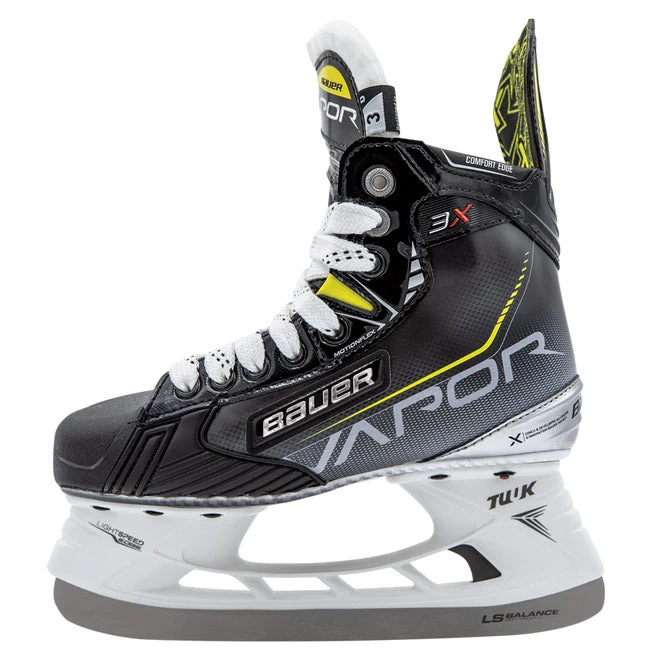The new Vapor 3X skate brings high-end performance to the third price point in the 2021 Bauer Vapor lineup. The improved quarter package with MotionFlex technology optimizes support and flex for young players, while the LS Balance runners allow developing skaters to find their best feel on the ice.