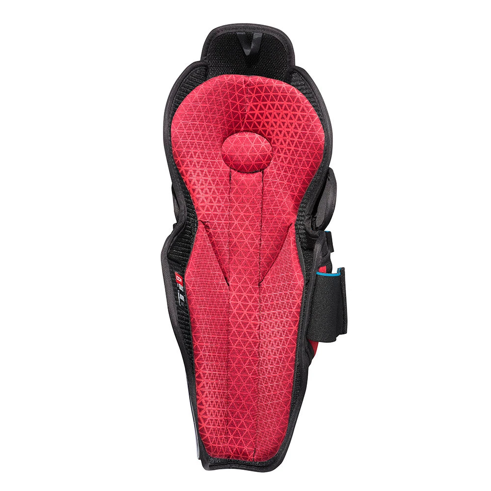 The Vibe hockey shin guard is an exclusive offering in the 2023 CCM Jetspeed lineup that delivers improved breathability and mobility for the competitive level player at a price point that makes it a unique value. Sitting below the FT680 this model keeps the compress-molded integrated calf guard and features a white PU leather bumper at the bottom of the shin cap with the look of the FT6.