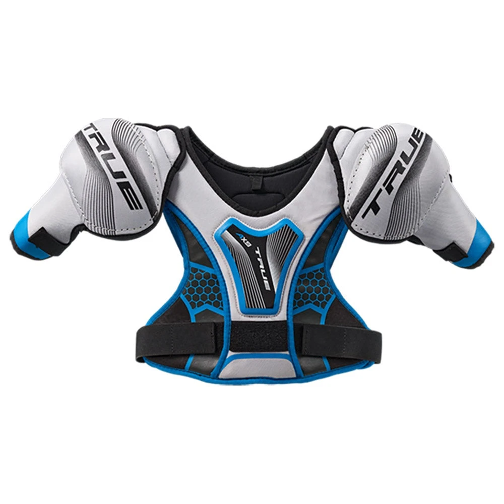 The AX9 M16 youth hockey shoulder pad is a recreational level TRUE pad perfect for the beginner player. Lightweight yet protective with large front velcro landing.